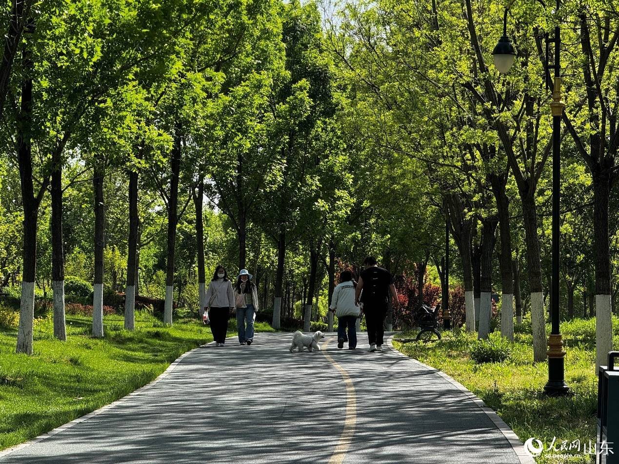 市民在园内绿道上悠闲漫步。人民网记者 公雪摄